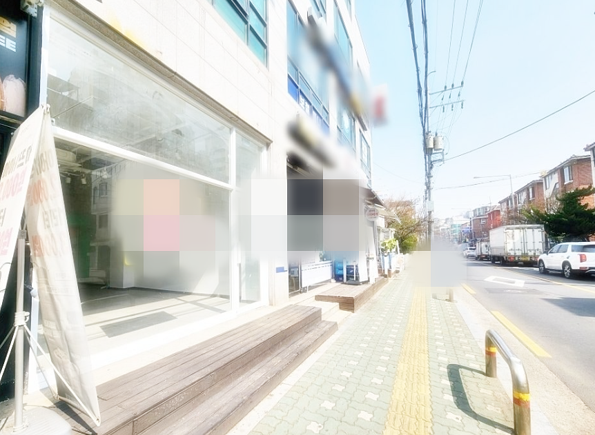 - 마포구청역~한강가는 왕복2차선 도로변 건물
